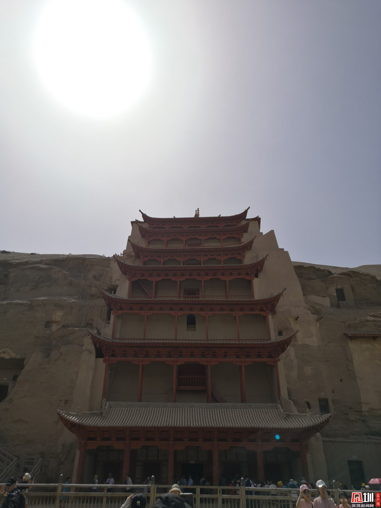 莫高窟是敦煌的代表,是駝鈴悠揚(yáng)的漫長(zhǎng)絲路的縮影。我不知道該怎樣去寫(xiě)神秘的莫高窟。我不想繪聲繪色地描寫(xiě)幽暗清冷的洞窟里,沒(méi)有講解員的手電筒根本看不清的雕塑。他們的神情舉止,他們的衣著色彩,無(wú)論是在藝術(shù)還是宗教與歷史上都是耐人尋味的,從非專(zhuān)業(yè)的角度解讀是不負(fù)責(zé)任的。所以以下是部分回憶講解員的介紹,部分出自自己對(duì)莫高窟的了解。