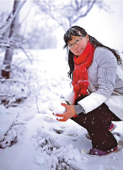 第一次直播時,恰巧下起了大雪,夏良英不顧寒冷,在氣溫零攝氏度的野外堅持上課,下課后,她還不忘在雪景中拍了幾張照片分享給學(xué)生。這樣的課堂,引得同學(xué)們紛紛點贊。