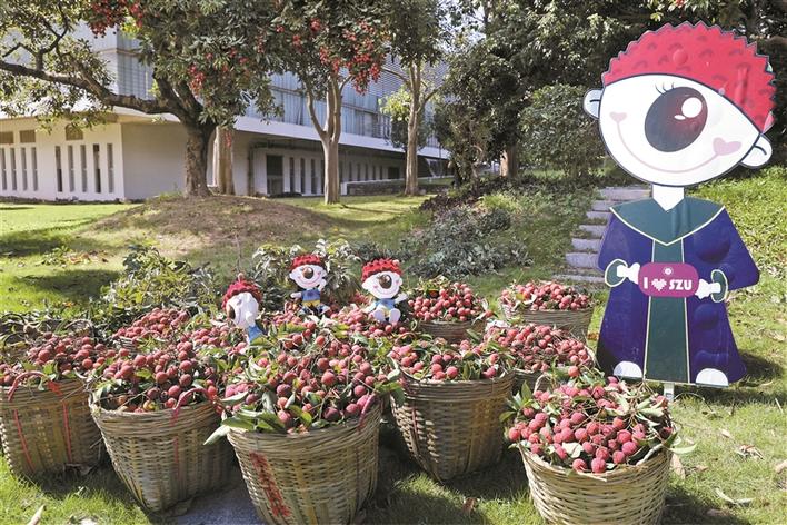 深圳晚報(bào)2020年06月19日訊 荔枝熟了,深圳大學(xué)迎來了傳統(tǒng)節(jié)日——“荔枝節(jié)”。每年六月荔枝成熟時(shí),深大都會(huì)采摘果實(shí),免費(fèi)發(fā)放給同學(xué)以及校友,并舉辦精彩的荔枝節(jié)活動(dòng)。今年深大繼續(xù)秉承傳統(tǒng),將采摘下來的荔枝,每天派發(fā)給全校師生品嘗,師生在各飯?zhí)瞄T口拿著校園卡均可領(lǐng)取。今年由于疫情原因,學(xué)生還沒有全部返回校園,深大還將把荔枝通過快遞的方式冷鏈直郵到學(xué)生手中。
