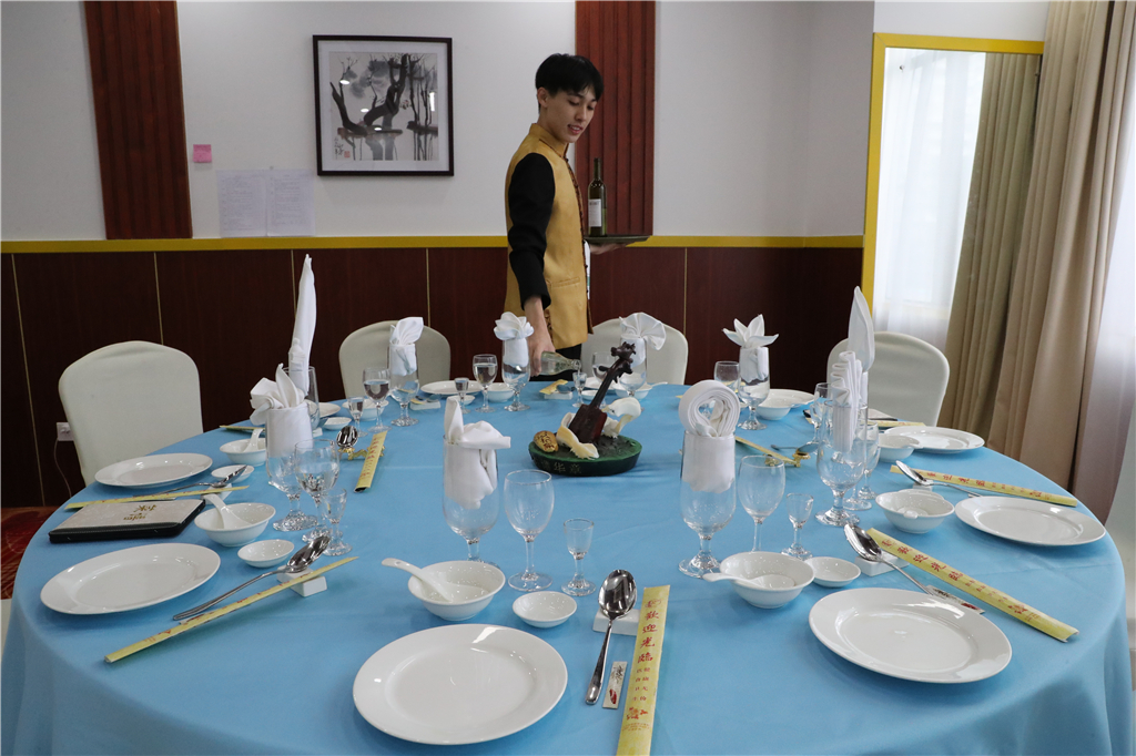 中餐宴會(huì)擺臺(tái)實(shí)訓(xùn)現(xiàn)場(chǎng)