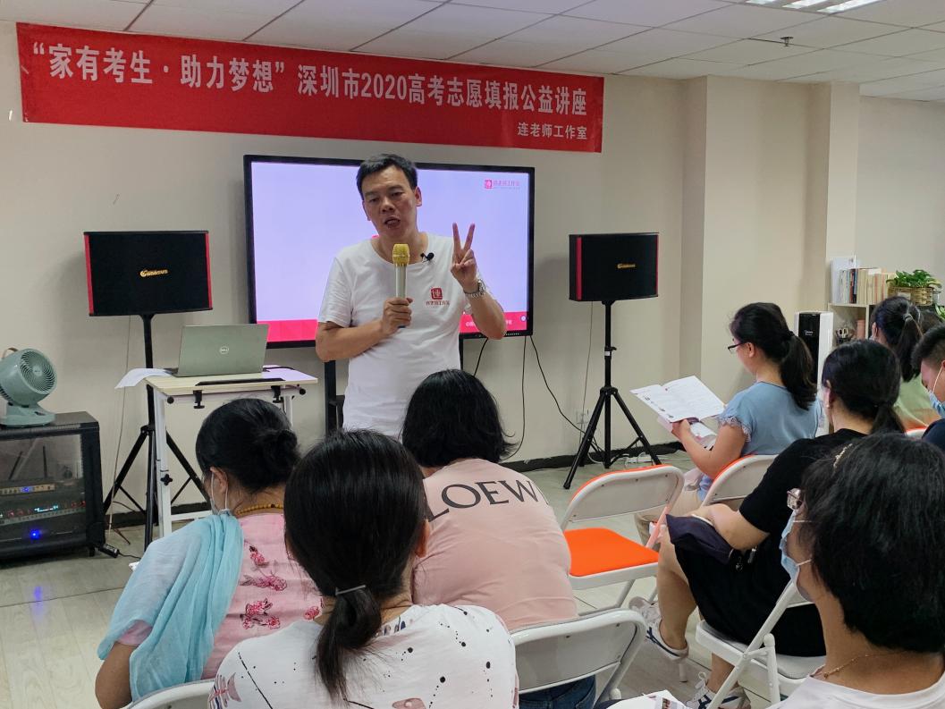 為了幫助深圳市廣大高考學(xué)子填出理想志愿,粵港澳高等教育研究中心主辦,連老師工作室承辦的2020“家有考生,助力夢想”高考志愿填報公益講座持續(xù)半個月,共計5場講座(其中線下4場,線上1場)。公益講座全部由生涯規(guī)劃視角下的高考志愿填報模型研發(fā)者、被業(yè)內(nèi)譽為廣東省最牛高考志愿規(guī)劃師的連德敏博士主講。