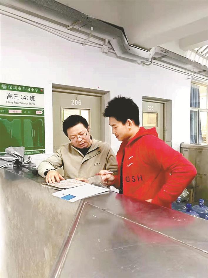 翠園中學(xué)老師在教室過道對(duì)學(xué)生進(jìn)行一對(duì)一輔導(dǎo)。