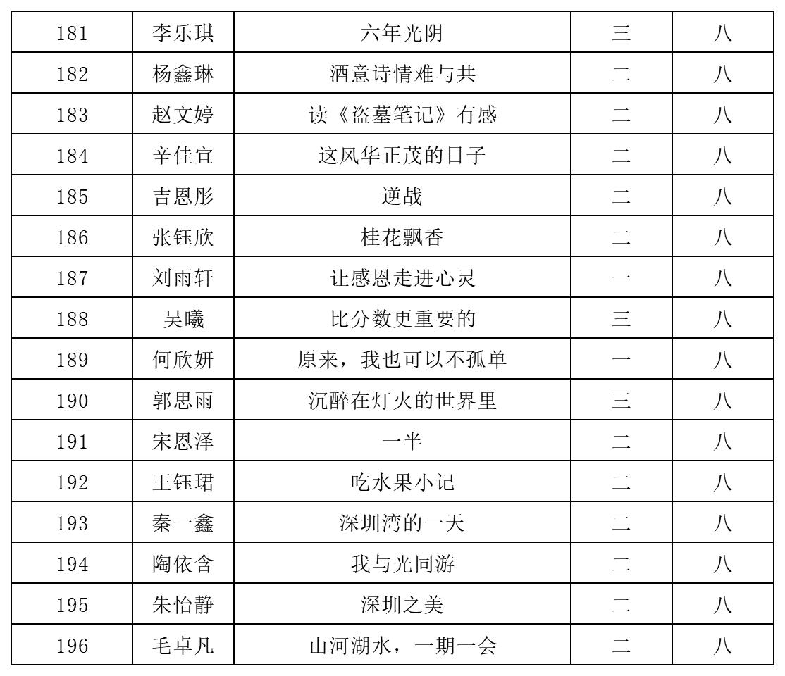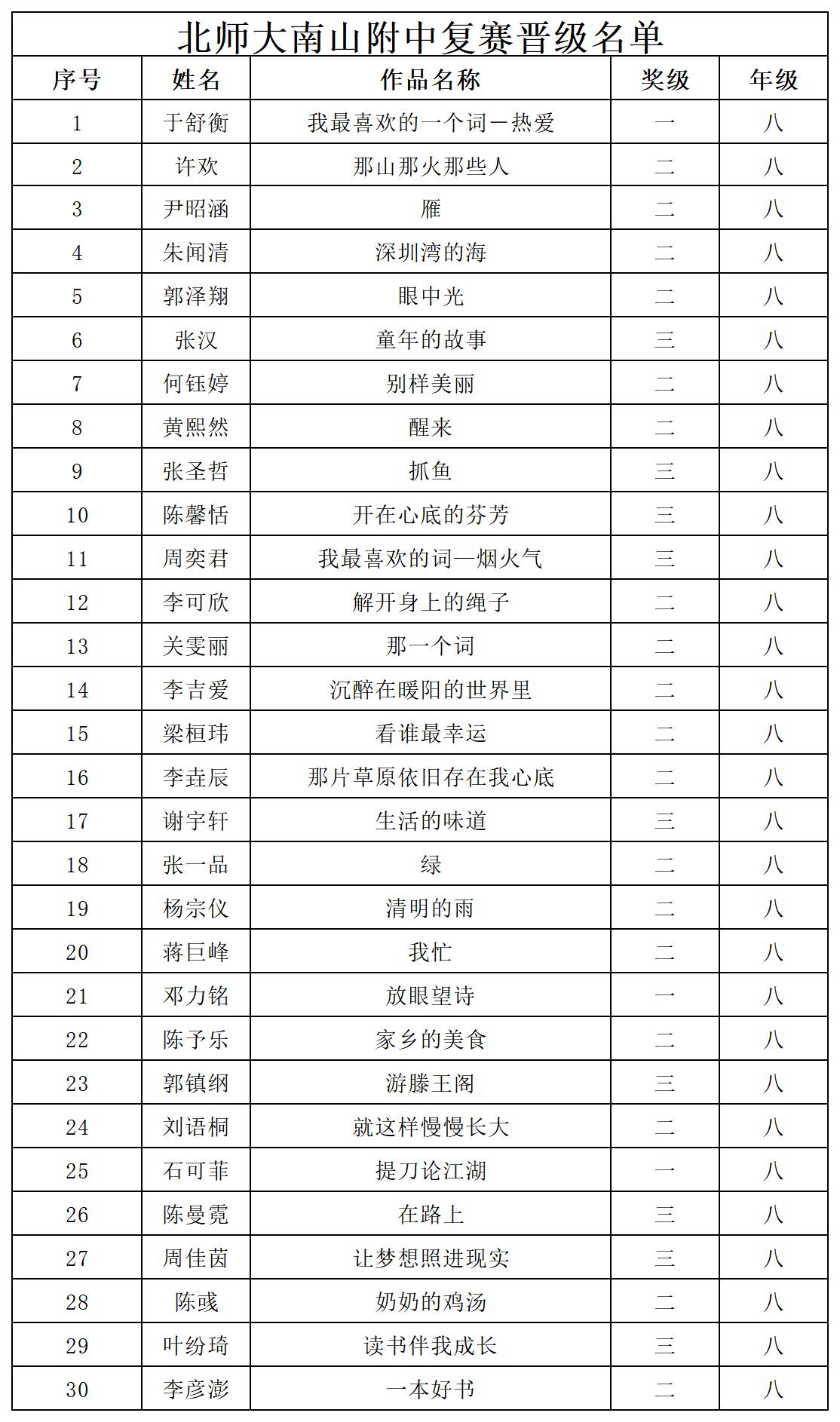 自2021年1月,活動征稿啟動以來,獲得了深圳市廣大中小學(xué)生、教師、文學(xué)愛好者的熱烈響應(yīng)積極參與,吸引了深圳百余所學(xué)校的上萬人關(guān)注報(bào)名。現(xiàn)公布北師大南山附屬學(xué)校中學(xué)部晉級復(fù)賽名單如下: