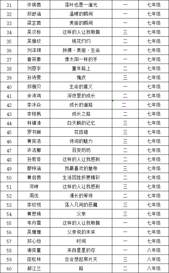 自2021年1月,活動征稿啟動以來,獲得了深圳市廣大中小學(xué)生、教師、文學(xué)愛好者的熱烈響應(yīng)積極參與,吸引了深圳百余所學(xué)校的上萬人關(guān)注報(bào)名?,F(xiàn)公布深圳市紅桂中學(xué)晉級復(fù)賽名單如下:
