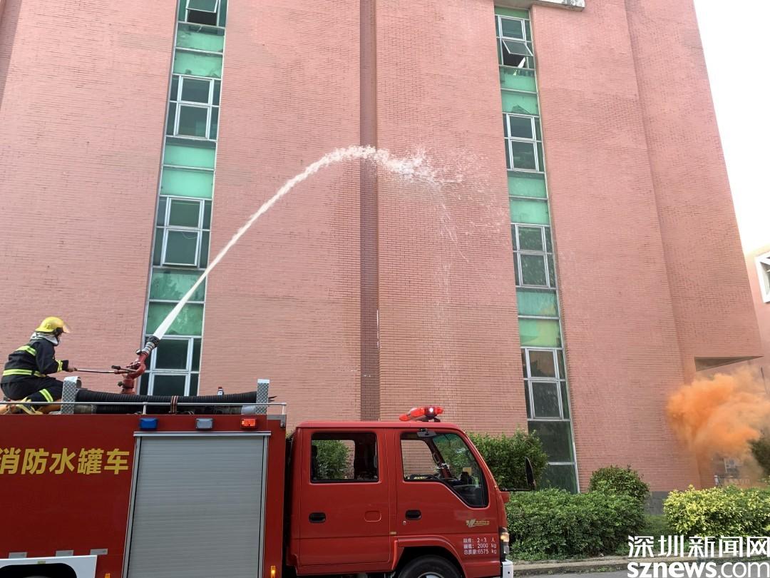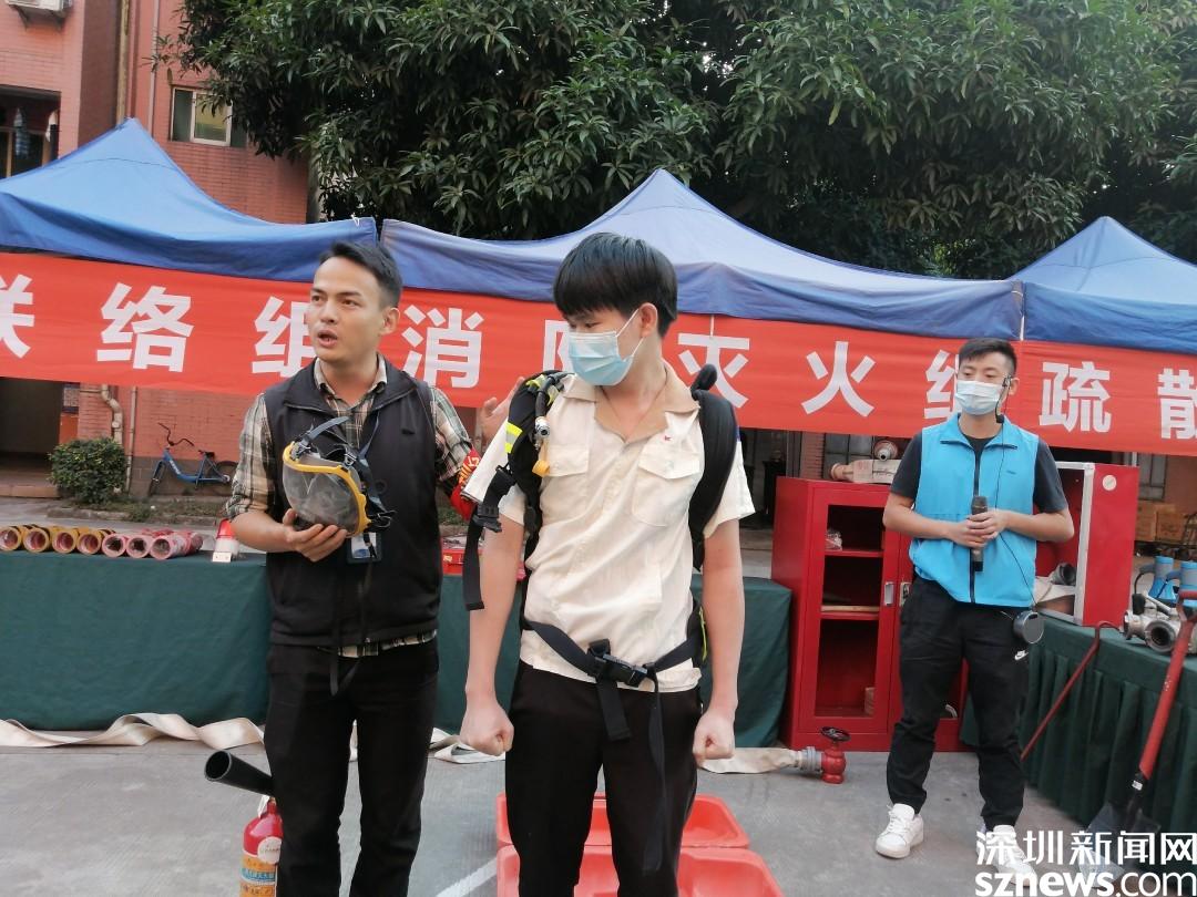 演練情景設(shè)定為工業(yè)園巡查人員發(fā)現(xiàn)火情,立刻上報(bào)并報(bào)警。隨后火警警報(bào)驟響,樓道內(nèi)冒出濃煙,疏散演練正式開始。工業(yè)園職工、居民在各組工作人員的指揮下,用口罩、衣服等捂口鼻,屈膝彎腰沿著既定的疏散路線,迅速向安全區(qū)域撤離。隨后社區(qū)消防員到達(dá)現(xiàn)場,用消防高壓水槍進(jìn)行高空滅火,撲滅火災(zāi),解除警報(bào)。演練結(jié)束后,社區(qū)還組織工業(yè)園職工、居民參加安全體驗(yàn)活動,學(xué)習(xí)消防救援設(shè)備的用法、進(jìn)行消防結(jié)繩和滅火實(shí)操訓(xùn)練。