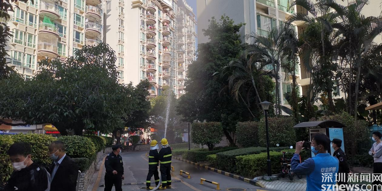 演練情景設定為巡查人員發(fā)現(xiàn)火情,第一時間向社區(qū)安全相關負責人匯報,安保處立刻報警并啟動消防應急預案。隨后火警警報驟響,樓道內冒出濃煙,疏散演練正式開始。居民們在工作人員的指揮下,用口罩、衣服等捂口鼻,屈膝彎腰沿著既定的疏散路線,迅速向安全區(qū)域撤離。隨后社區(qū)消防員趕赴現(xiàn)場,使用高壓水槍撲滅火災,解除警報。演練結束后,社區(qū)還組織居民參加安全體驗活動。