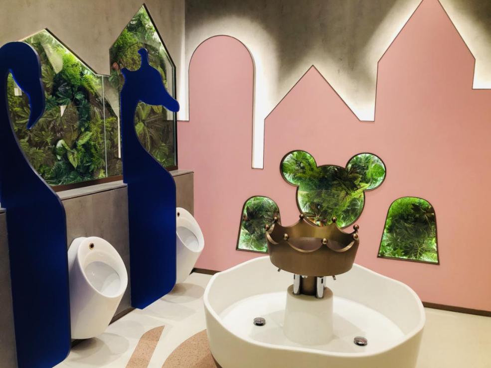 水中庭海之心 LED互動地幕秀,隨時(shí)與深海精靈上演親密接觸,內(nèi)設(shè)跨層螺旋星語滑梯,讓人們回歸童年的冒險(xiǎn)世界;木中庭,“凈化”城市呼吸系統(tǒng)的鮮氧氣泡,向下“生長”的繁茂大樹,如同漫游在森意盎然的自然幻境;花中庭,澆灌“蒲公英”主題跨層挑臺,生長出城市里的秘密花園。同時(shí),打造玻璃之森、室內(nèi)養(yǎng)魚池兩大自然微景觀,將生態(tài)之靈氣納入方寸之間。