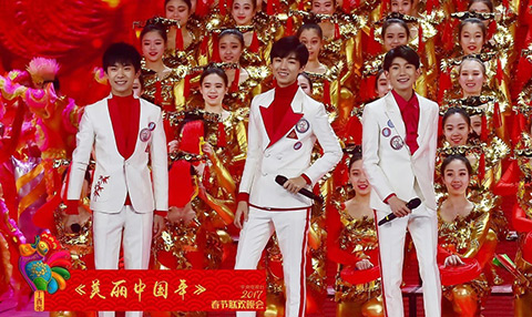 除夕之夜,以“大美中國夢 金雞報春來”為主題的雞年春晚如約而至。以“歡樂頌五美”與TFBOYS共同奉獻的《美麗中國年》開場,以李谷一、關(guān)牧村、高音、劉雨欣等新老藝人演唱《難忘今宵》結(jié)尾,全程42個節(jié)目亮相春晚舞臺,為除夕年夜飯捧上一道文化大餐,也為農(nóng)歷雞年開了一個好頭。