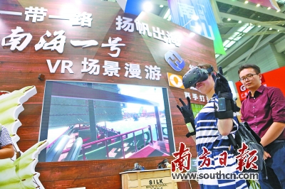 游客體驗“南海一號”VR場景漫游(南方日報記者 魯力 攝)