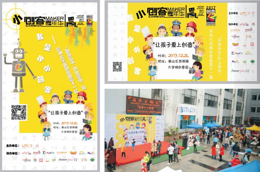 深圳大學城創(chuàng)意園主辦,活動以創(chuàng)意街市+創(chuàng)業(yè)集市的形式,展示、銷售孩子的創(chuàng)意產(chǎn)品,并結合專業(yè)創(chuàng)客實驗室、3D打印、增強/虛擬現(xiàn)實、機器人等科技、技術,讓孩子們在輕松投入的氛圍中體驗最前沿的科技產(chǎn)品和創(chuàng)客項目?!皠?chuàng)新”、“實踐”、“分享”,活動旨在培養(yǎng)孩子們的動手創(chuàng)作能力、社會交往技能、團隊協(xié)作、實踐技巧、集體榮譽,拓展孩子們的創(chuàng)新創(chuàng)意思維,讓孩子愛上創(chuàng)造,逐步提升孩子的綜合能力,為將來更好地適應社會的發(fā)展趨勢打好基礎。