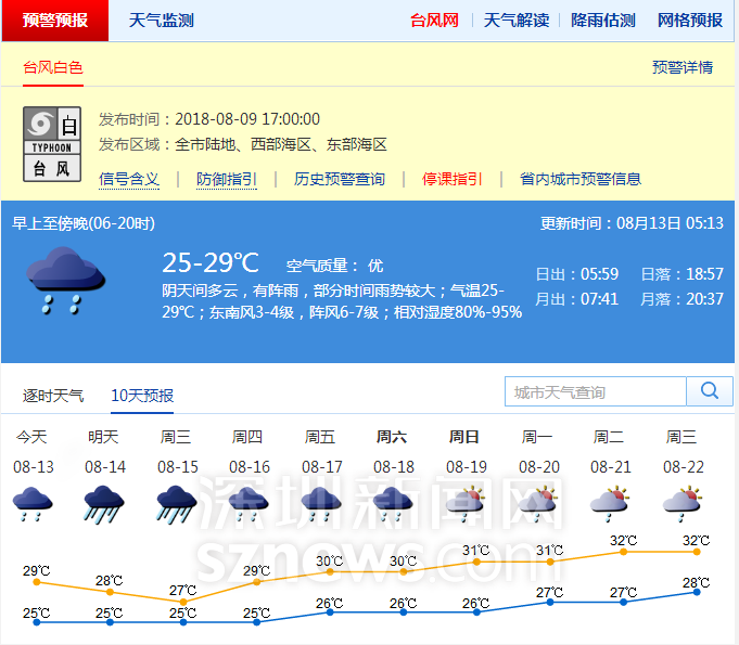 深圳市氣象臺預(yù)報(bào)員張麗表示,深圳將較長時(shí)間受熱帶低壓外圍環(huán)流影響,8月12日-15日將持續(xù)間歇性頻密降雨,這4天累積降雨量將達(dá)100-150毫米,局部250毫米以上;其中,8月12日-13日,有大雨,局部暴雨;8月14日-15日為降雨最強(qiáng)時(shí)段,有暴雨到大暴雨,最大小時(shí)雨強(qiáng)50-80毫米,沿海和高地最大陣風(fēng)8-9級;8月16日開始,雨勢減弱。
