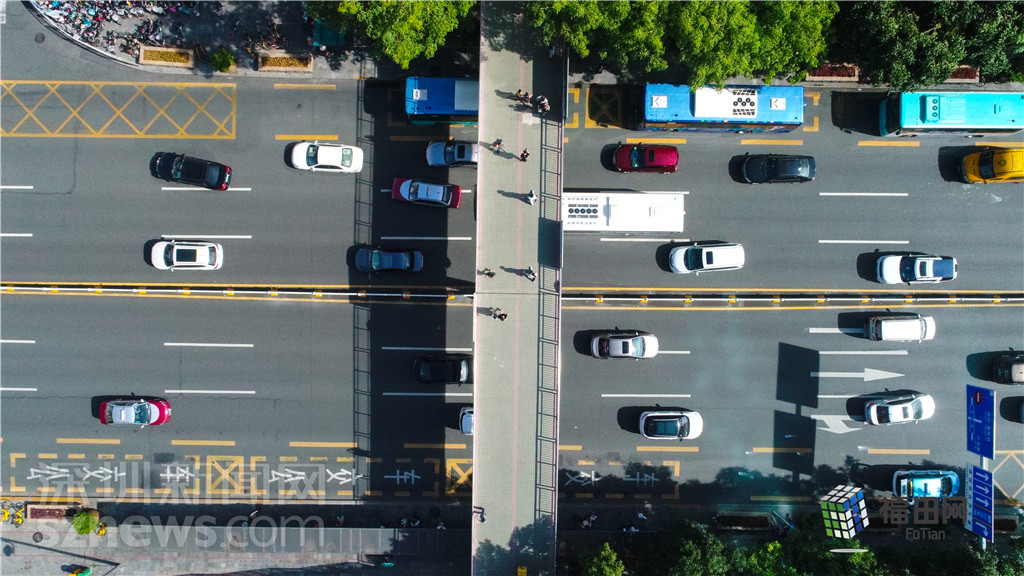 《飛閱福田》的第一站來到了備受矚目的華強北。華強北是中國電子第一街,也是深圳引以為豪的一張名片,這里每天車來人往,交通繁忙。位于華強北片區(qū)西部、深南中路上的中航天橋就是華強北一處重要的交通樞紐。2018年2月深圳市交通運輸委員會福田交通運輸局發(fā)布《中航天橋及周邊空中慢行系統(tǒng)工程(規(guī)劃及設計)》招標公告,公告中提出,深南路中航天橋設施簡陋,存在無遮風避雨頂棚,無電扶梯,結構老化等情況,已不符合福田區(qū)打造國際城市的目標及廣大市民對過街品質的需求,須盡快對該天橋拆除重建,新建天橋上設置綠化、頂棚以及電扶梯,提升天橋景觀藝術及交通品質。
