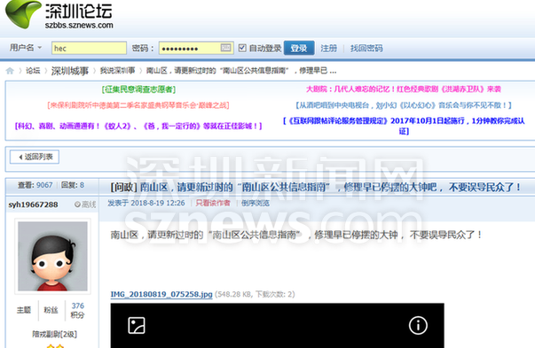 深圳新聞網8月24日訊(記者 何暢)近日,網友“syh19667288”在深圳論壇發(fā)帖《南山區(qū),請更新過時的“南山區(qū)公共信息指南”,修理早已停擺的大鐘吧, 不要誤導民眾了!》。據曝料,南山區(qū)“公共信息導向指南”指示牌中的地鐵路線信息嚴重滯后,亟需更新。