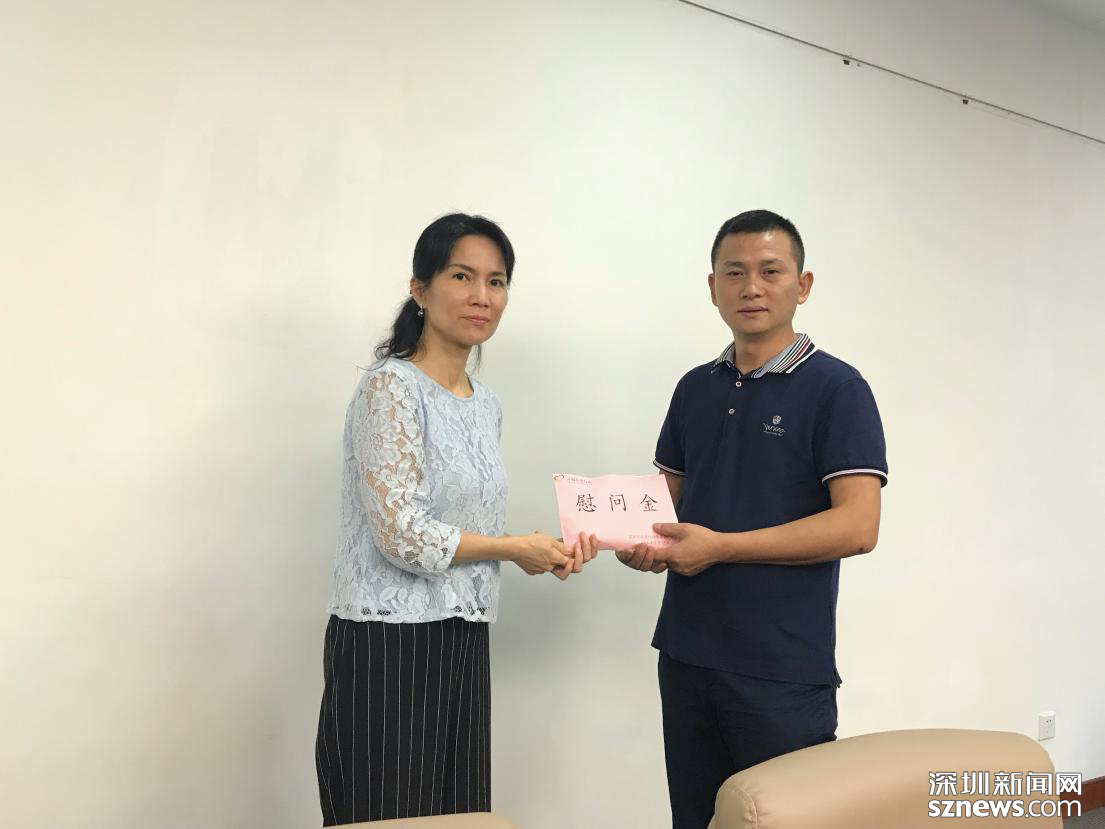 9月25日下午,深圳市關(guān)愛行動組委會辦公室(以下簡稱“市關(guān)愛辦”)和深圳市關(guān)愛行動公益基金會在得知這一情況之后,積極響應,在深圳市教育局相關(guān)部門的大力協(xié)調(diào)下,向李得父親送上3萬元慰問金。市關(guān)愛辦的相關(guān)負責人叮囑李得父親,希望慰問金可以幫其家庭渡過難關(guān),也希望學校、家庭等各方多加鼓勵孩子,樹立信心, 放下思想包袱,好好配合開展治療,祝愿李得同學早日康復,重新回到校園上課。
