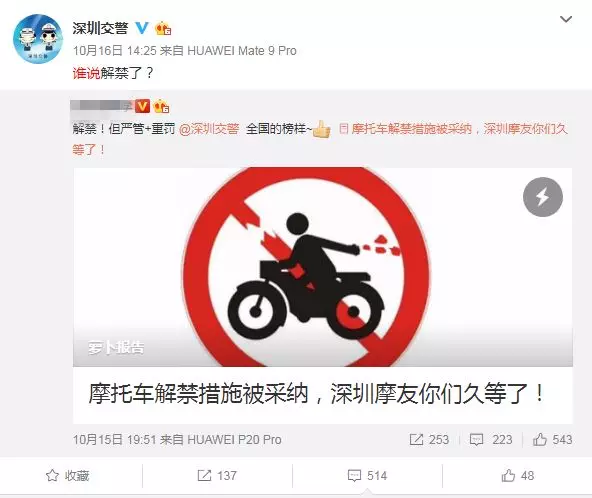 深圳從未如網(wǎng)上所說要對摩托車解禁,并將繼續(xù)實(shí)施禁摩管理政策。目前,對于在原關(guān)外部分交通不便的偏遠(yuǎn)地區(qū),為了市民出行的便利,是否適度放開“禁摩令”我們也在進(jìn)一步研究之中。同時,市民可以在網(wǎng)上提出合理的管理建議和意見,為將來深汕合作區(qū)試點(diǎn)多元化管理建言獻(xiàn)策,現(xiàn)深圳暫不考慮解禁。