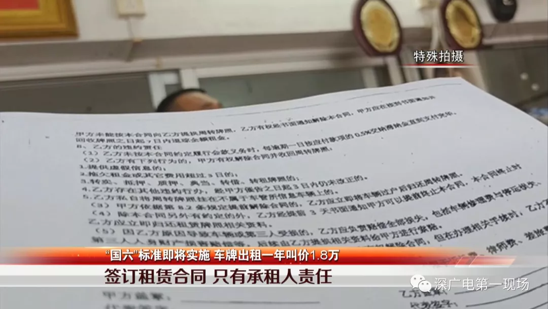 車牌、指標(biāo)的錯位市場,衍生了車牌出租的利益。二手車行在這過程中處于主導(dǎo)的地位,他們規(guī)定在車牌租用之前,承租人需要簽訂一份租賃合同,按理說合同應(yīng)該劃分雙方的責(zé)任,然而記者發(fā)現(xiàn),合同明確指出了租牌者違約應(yīng)當(dāng)承擔(dān)的責(zé)任,條款多達(dá)10多項。