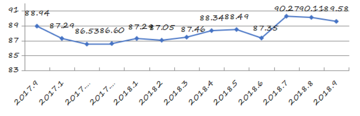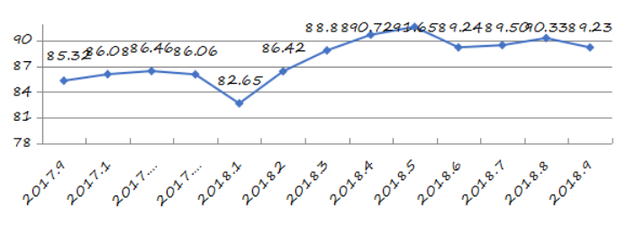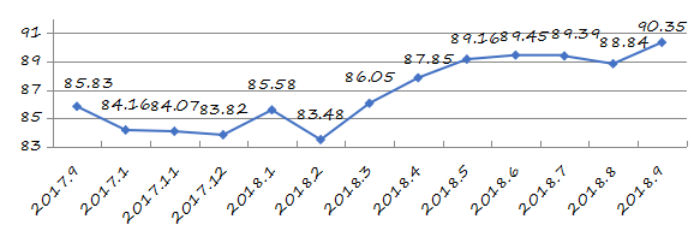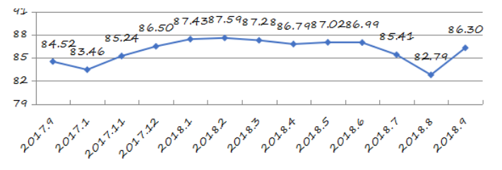 國家統(tǒng)計局深圳調(diào)查隊編制9月份深圳市城市交通文明指數(shù)為87.02分,比上月增加0.05分,比上年同期增加2.06分;深圳市城市交通文明進(jìn)步指數(shù)為-0.05 % (見圖1)。