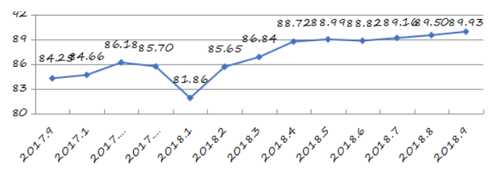 2018年9月份深圳市及各區(qū)(新區(qū))城市交通文明指數(shù)