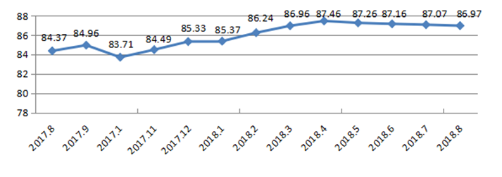 圖8坪山區(qū)城市交通文明指數(shù)走勢圖(計量單位:分)