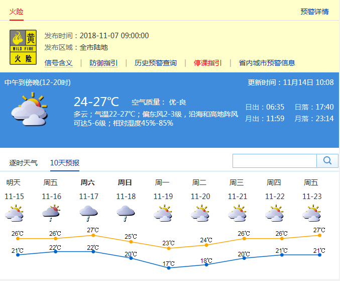市氣象局發(fā)布未來十天天氣預報(數(shù)據更新于11月14日10時08分)