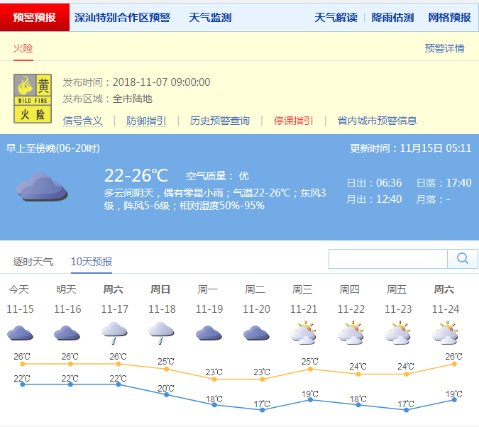 模式切換完畢:今起深圳有小雨 早晚穿短袖有點涼涼!