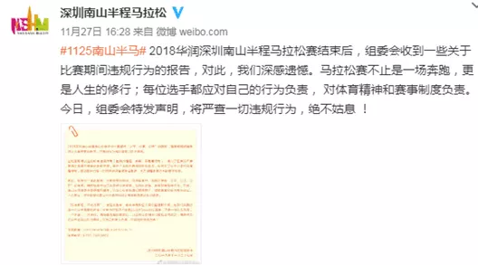 除了抄近道,比賽過(guò)程中還被曝出存在套牌、替跑等多種違規(guī)行為。例如,從網(wǎng)上流傳的比賽參賽選手照片可以發(fā)現(xiàn),同樣是B22622的號(hào)碼布,一位參賽選手的號(hào)碼布是綠色的,另一位參賽選手的號(hào)碼布則是藍(lán)色的。除此之外,不少號(hào)碼布都被曝出存在套牌行為。有市民表示,這樣違背體育精神,也是自己騙自己,實(shí)在不可取。