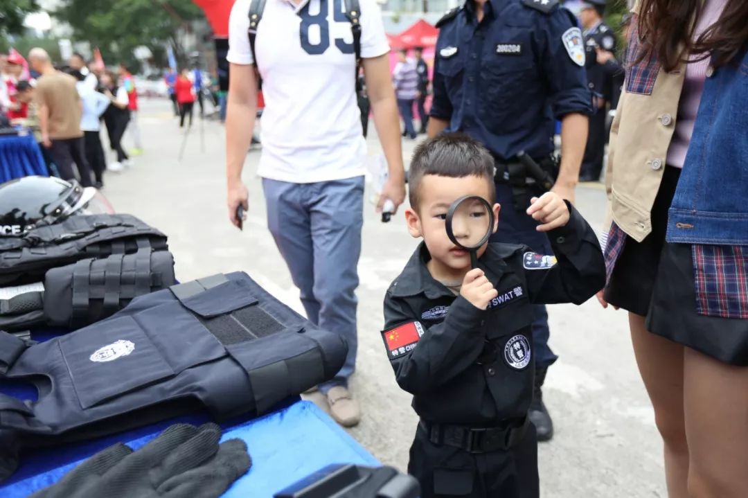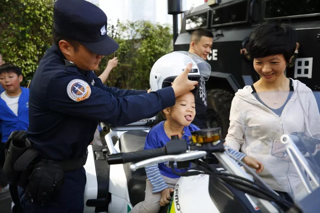 防暴盾牌、槍支警械威武霸氣,隊列棍術、擒拿格斗輪番上陣。很多人興致勃勃地穿戴警用裝備,頭戴鋼盔、身穿警服,登上反恐敞篷車拍照留念,圓夢警察夢想。