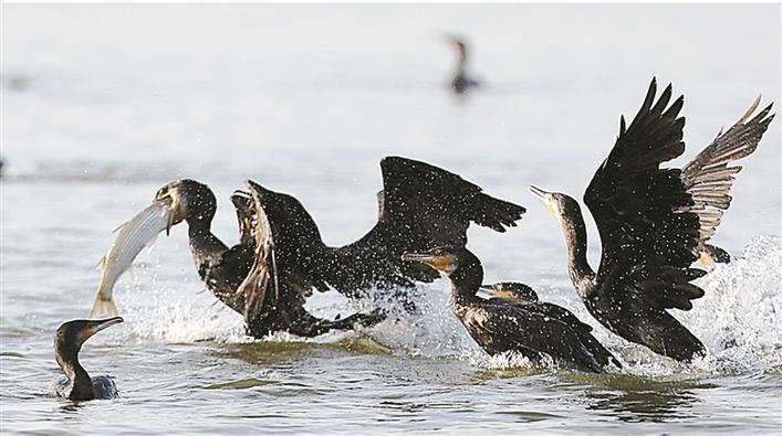 日前,數(shù)萬(wàn)只普通鸕鶿來(lái)到深圳灣捕食。據(jù)深圳市觀鳥(niǎo)協(xié)會(huì)田老師介紹,每到冬季普通鸕鶿從北方來(lái)到深圳過(guò)冬,來(lái)年春季返回北方繁衍生息。