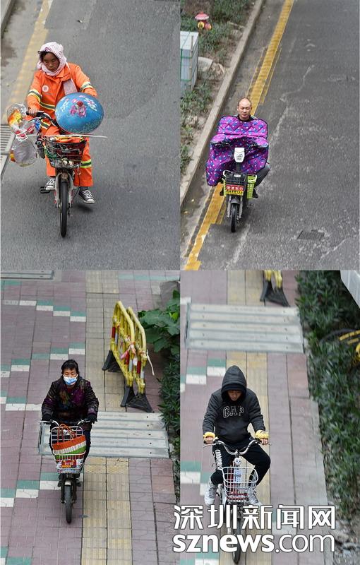 氣溫驟降,騎行更覺(jué)寒冷,往來(lái)騎車(chē)的市民使用各種保暖措施御寒。
