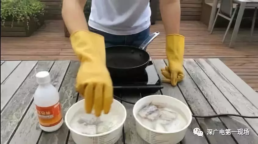 第三步,分別將正常帶魚和浸泡了福爾馬林的帶魚進行油炸。