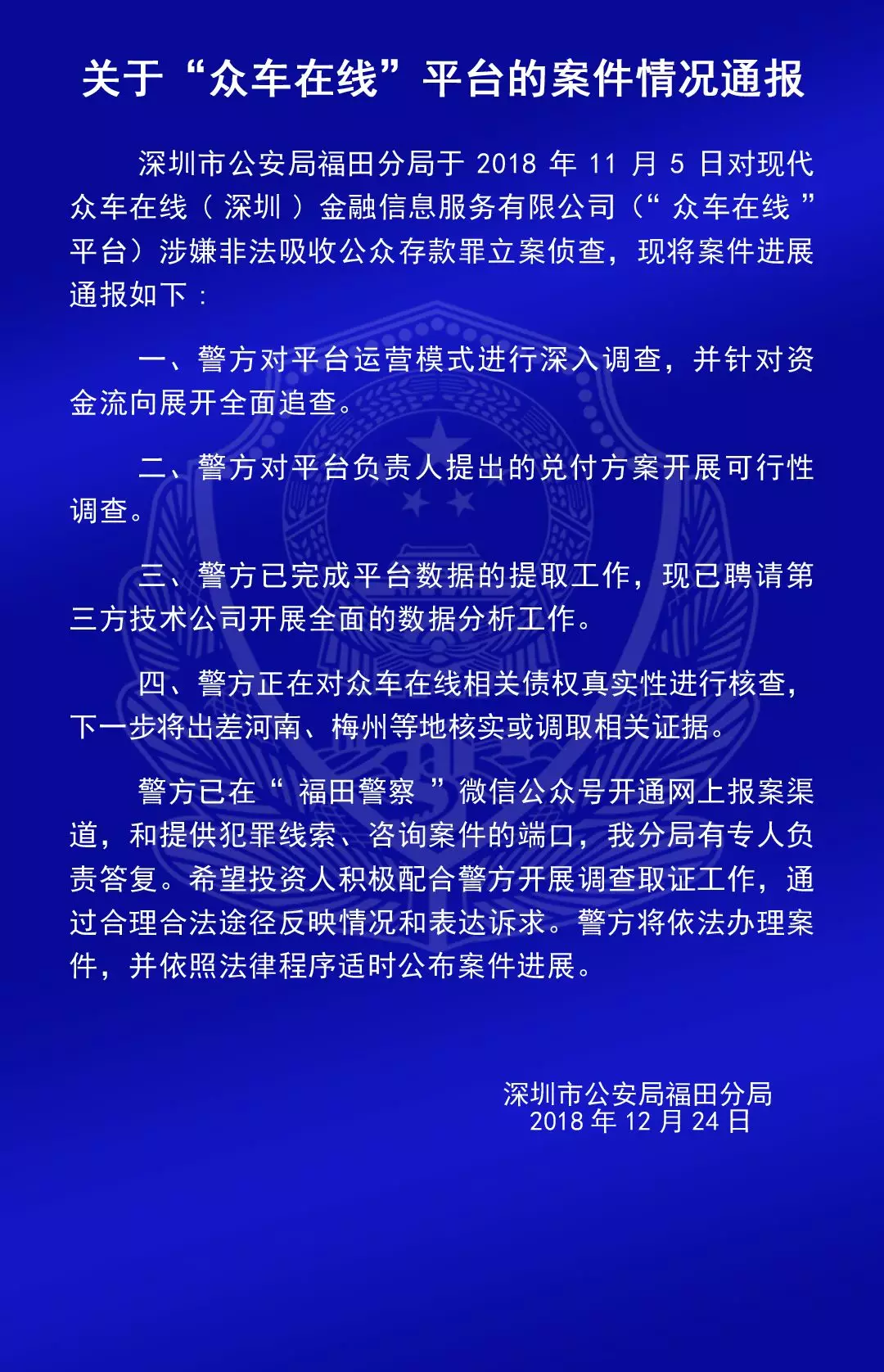 關(guān)于“合拍在線”“壹佰金融”“五星財(cái)富”“眾車在線”“財(cái)富中國(guó)”“小零錢”“錢爸爸”“合時(shí)代”和“前金融”平臺(tái)的案情通報(bào)