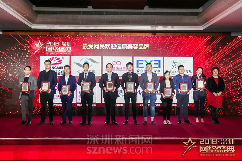 “十大行業(yè)最受網(wǎng)民歡迎品牌”獎(jiǎng)項(xiàng)(健康美容)獲獎(jiǎng)代表上臺(tái)領(lǐng)獎(jiǎng)