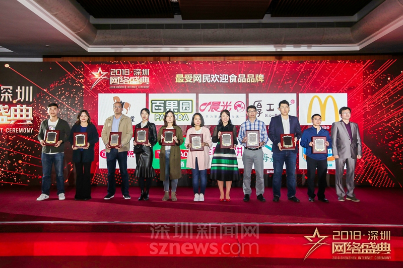 “十大行業(yè)最受網(wǎng)民歡迎品牌”獎(jiǎng)項(xiàng)(食品)獲獎(jiǎng)代表上臺(tái)領(lǐng)獎(jiǎng)