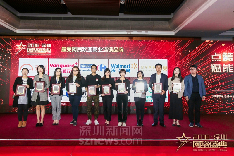 “十大行業(yè)最受網(wǎng)民歡迎品牌”獎(jiǎng)項(xiàng)(商業(yè)連鎖)獲獎(jiǎng)代表上臺(tái)領(lǐng)獎(jiǎng)