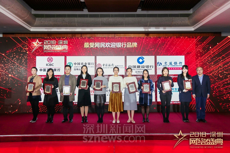“十大行業(yè)最受網(wǎng)民歡迎品牌”獎(jiǎng)項(xiàng)(銀行)獲獎(jiǎng)代表上臺(tái)領(lǐng)獎(jiǎng)