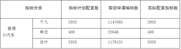 據(jù)悉,2018年第11期以搖號方式配置的普通小汽車增量指標共3333個,其中個人2933個、單位400個。參加搖號的有效編碼數(shù)共1171141個,其中個人普通小汽車有效編碼1147564個,單位普通小汽車有效編碼23577個。