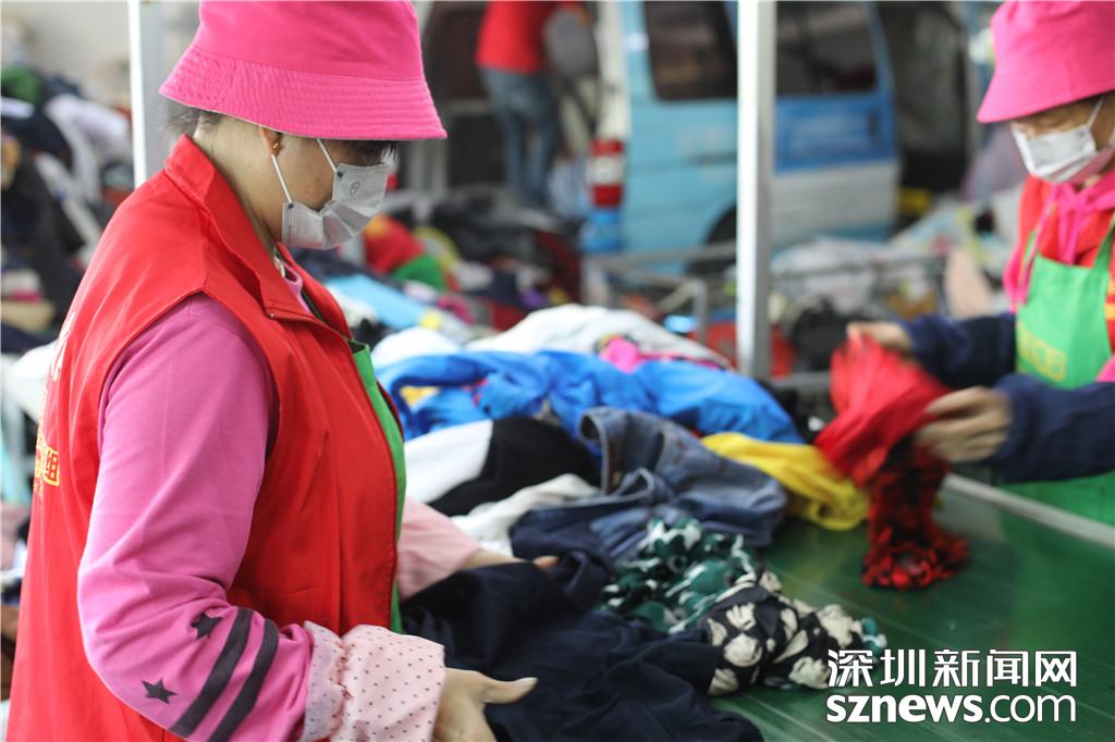 工作人員開始對(duì)回收的衣服進(jìn)行第一次分揀