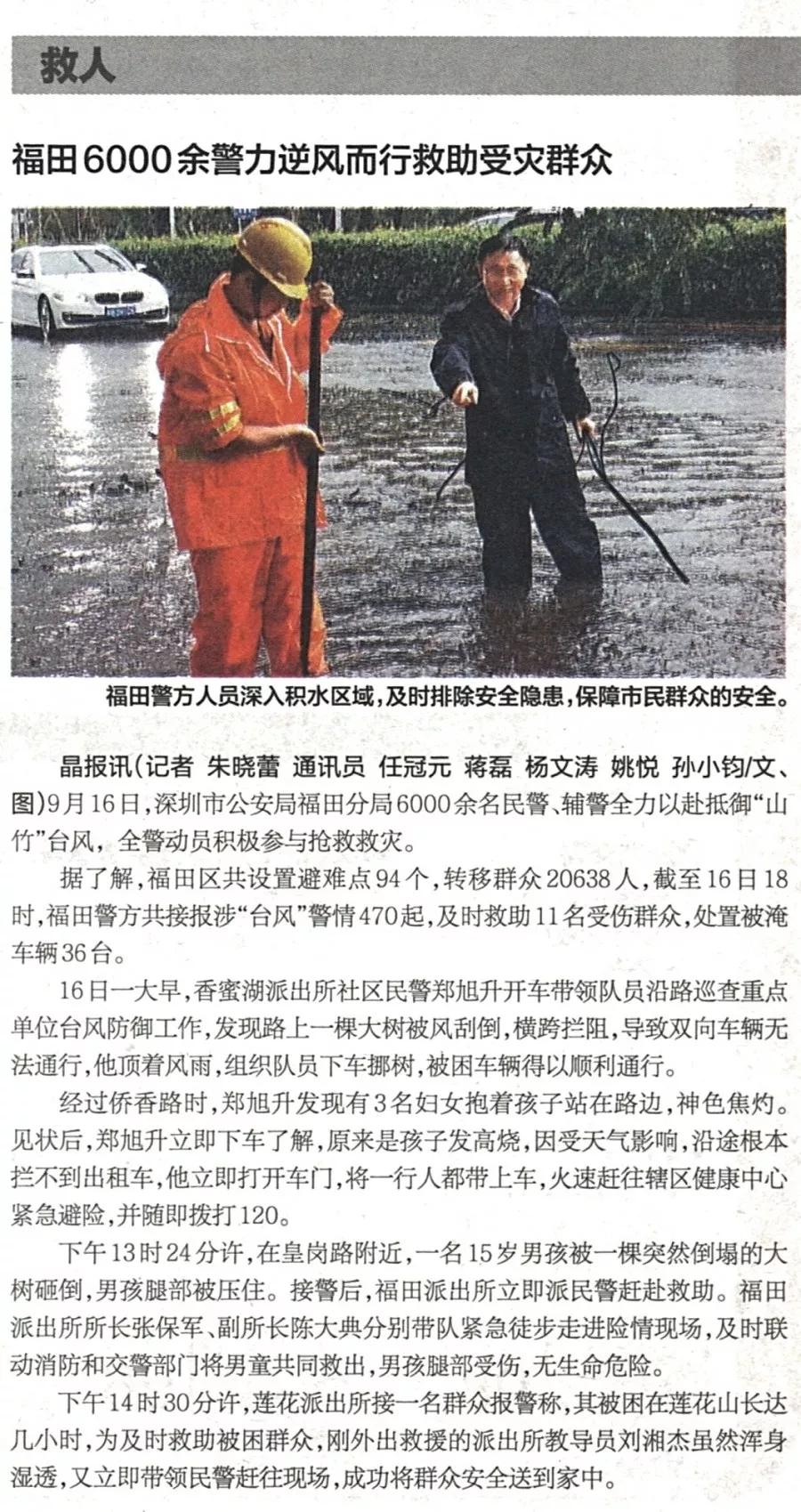 ★★福田警方啟動一級勤務(wù),全力投入防御超強臺風“山竹”行動中。福田警方共接報涉“臺風”警情470起,及時救助11名受傷群眾,轉(zhuǎn)移群眾20638人,處置被淹車輛36臺,確保了轄區(qū)治安穩(wěn)定。