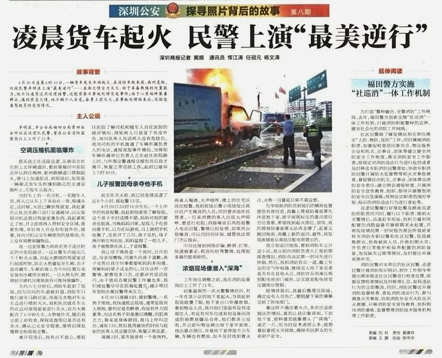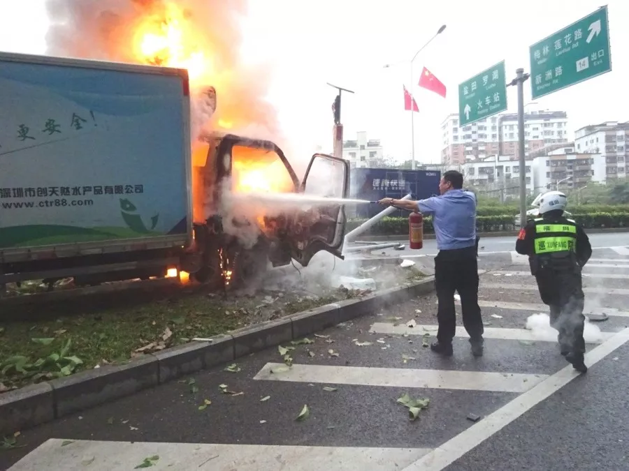 ★★景田派出所巡邏民警卓明浪面對熊熊燃燒的貨車和隨時可能發(fā)生的爆炸,無所畏懼、反應快速、處置專業(yè),把損失降為最低。
