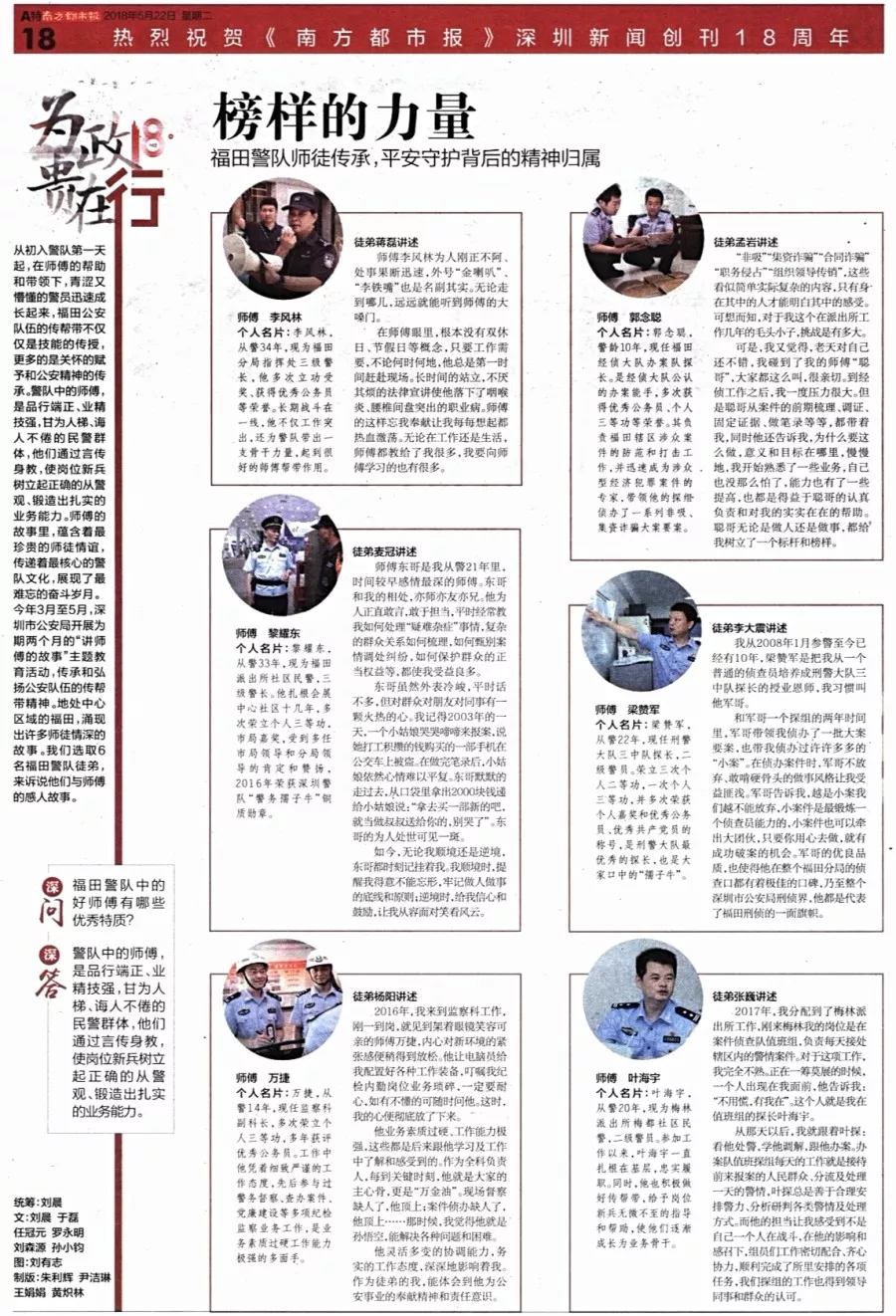 ★★深圳市公安局黨委號召全警爭做“老黃?!薄靶∶鄯洹?。福田警隊用實際行動踐行使命,傳承責任與光榮,經(jīng)年累月,點滴養(yǎng)成,躬耕轄區(qū),守望平安,全心全意為人民服務,任時光流逝,初心不改,韶華不負。