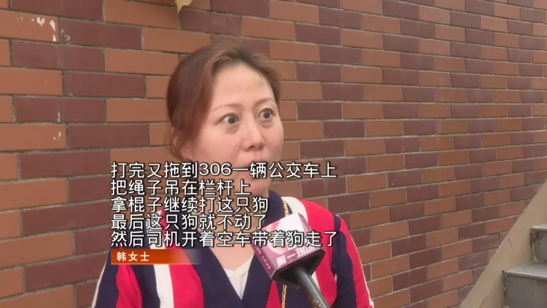 不過(guò),當(dāng)韓女士向工作人員提出要查看狗證時(shí),工作人員改口說(shuō)這是一條流浪狗,咬了人才打它,并用繩子拴住狗繼續(xù)打,最后把它拖上了一輛公交車。