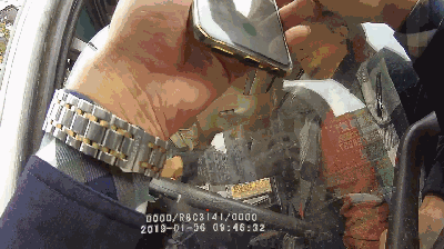 將民警所抓車(chē)窗升了上去