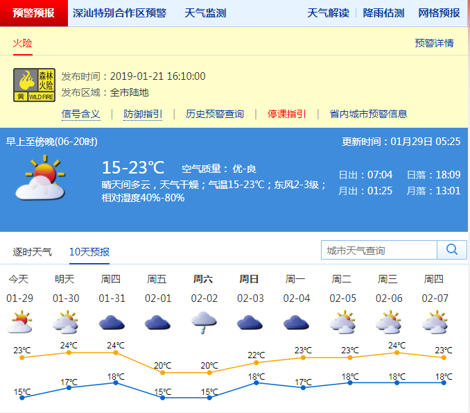 氣象局提醒市民,未來三天深圳晴朗干燥,是春節(jié)前大掃除和洗曬的好時(shí)機(jī);最近空氣持續(xù)干燥,森林火險(xiǎn)黃色預(yù)警生效中,市民需注意用火安全,外出游玩不帶火種上山;寒冷天氣需嚴(yán)防一氧化碳中毒,浴室應(yīng)注意通風(fēng)良好,注意燃?xì)鉄崴魇褂冒踩?,?yán)禁使用直排式和煙道式熱水器。