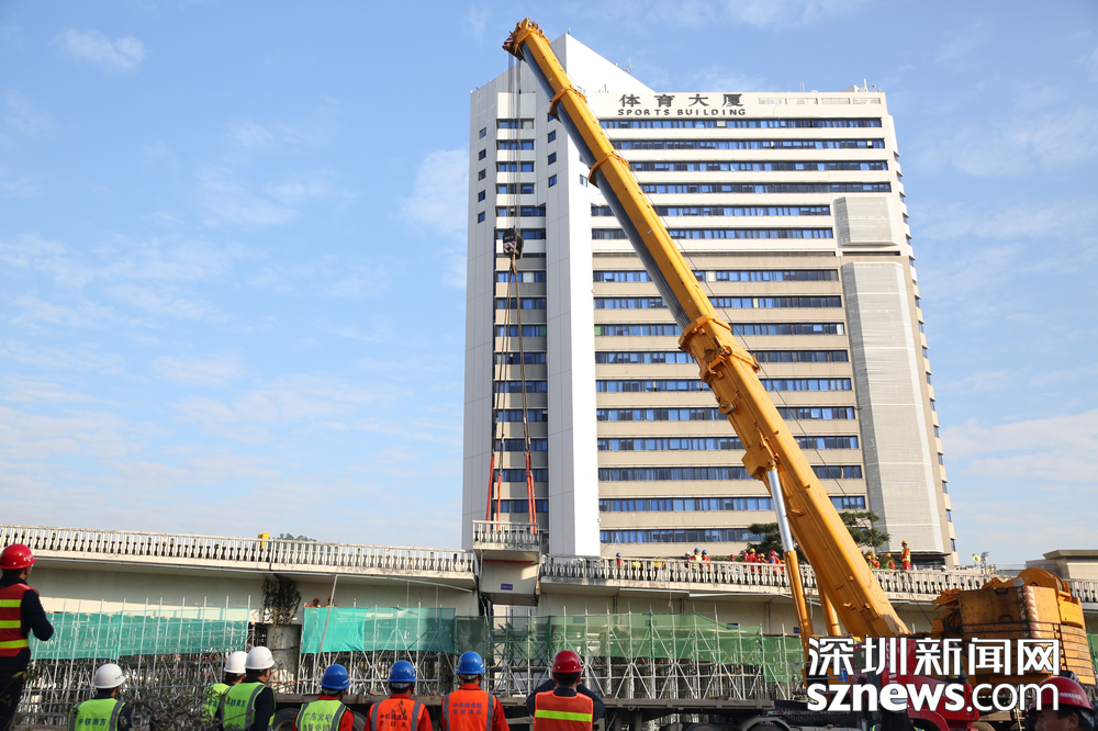黃木崗立交第一塊梁體吊裝。