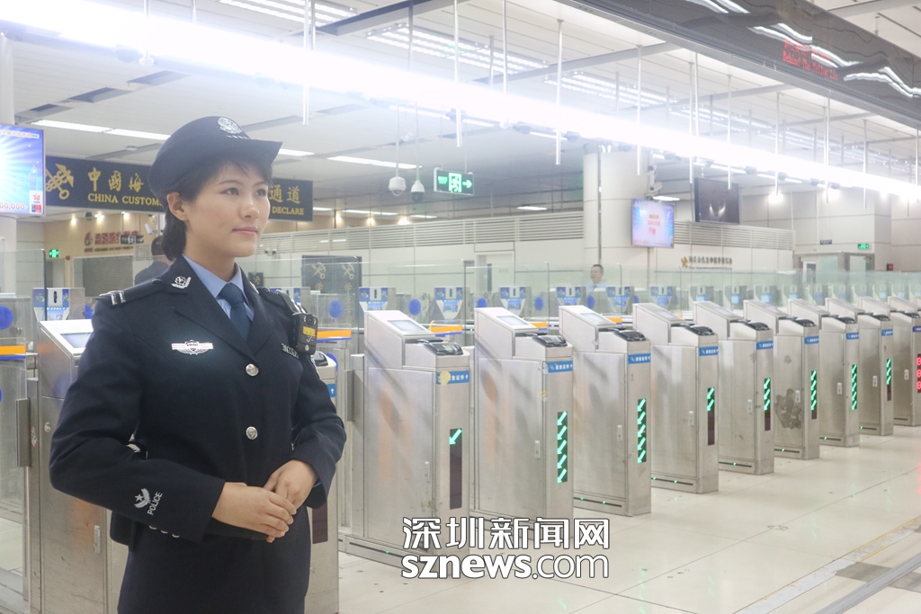 2月3日2:00,皇崗邊檢站十三隊(duì)分隊(duì)長(zhǎng)云娜在皇崗口岸出境大廳自助查驗(yàn)通道監(jiān)護(hù)(通訊員 黃俊生攝)
