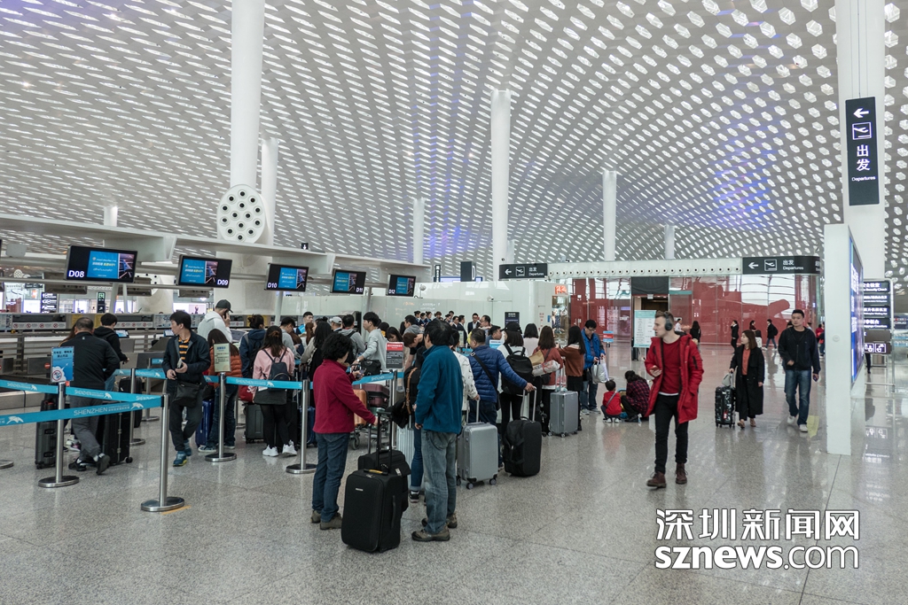 2月3日10:15,寶安機(jī)場出發(fā)大廳,旅客正在辦理行李托運(yùn)手續(xù)(實(shí)習(xí) 生關(guān)天宇攝)