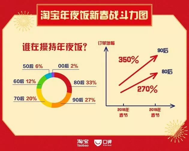 如今,80后已扛起年夜飯張羅大旗,成為臘月里下單年貨最多的群體,而90后增長(zhǎng)迅速。