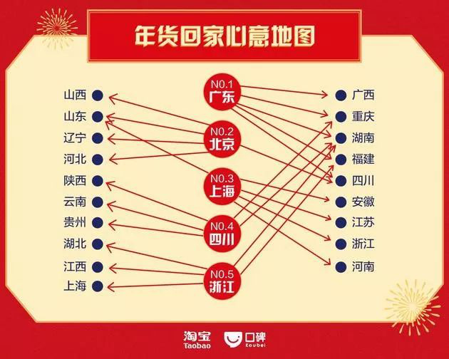 數(shù)據(jù)顯示,上海人在這一時(shí)間熱衷購(gòu)買鮑魚、帝王蟹、大閘蟹作為年夜飯;而四川人則喜愛囤臘腸、魚類產(chǎn)品作年貨。而廣東人過(guò)年必點(diǎn)必吃盆菜,這道菜品在淘寶上銷量高漲不斷,十分受人追捧與喜愛。