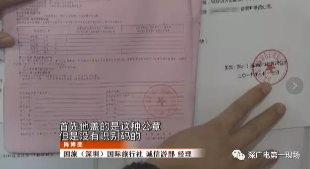 李女士是通過上網(wǎng)百度搜索,找了這家自稱深圳“國旅”的野馬旅行社,并且,在與李女士等46人簽定的合同和收據(jù)落款處,都蓋有清晰的深圳市國旅印章。8號上午,李女士拿到了證件,沒等購物開始,就簽字先行離團轉(zhuǎn)至現(xiàn)在的酒店安頓,同時打電話發(fā)微信向深圳的朋友求助。人大代表楊勤關(guān)注到此事后,將情況轉(zhuǎn)告了深圳市消費者委員會。消委會透露,經(jīng)與深圳國旅確認,北方大廈7樓無他們的營業(yè)網(wǎng)點,“珊珊”等也并非國旅員工。