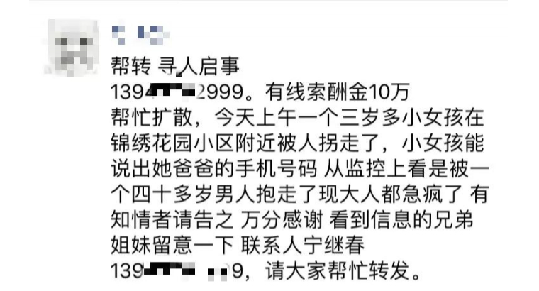 深圳一3歲女孩被拐,家長懸賞10萬 ...